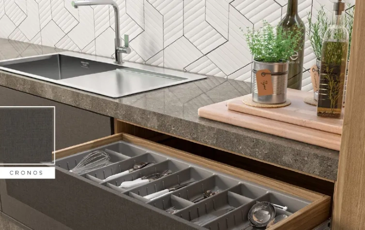 Com força e sobriedade do grafite, a tonalidade do Cronos foi desenvolvida para equilibrar a coleção, completando a cartela de unicolores BP. Seu desenho sutil, combinado com a textura de tecido, permite que o padrão seja utilizado com um unicolor ou como um tecido. Seu nome é inspirado em uma estrela que absorve os planetas que a orbitam.