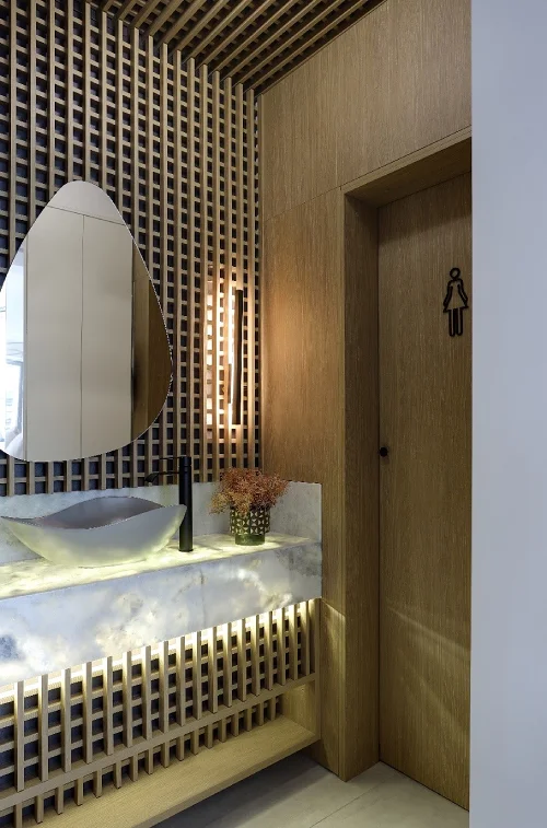 Acessórios funcionais e elegantes também fazem muita diferença nos banheiros compactos. Itens como torneiras, puxadores e espelhos que combinem com o estilo do banheiro trazem um toque especial a todo o projeto. Prefira sempre os modelos mais modernos, que agregam praticidade e sofisticação ao ambiente.