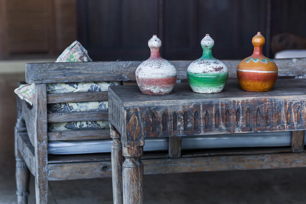 Objetos vintages são comuns em decorações do estilo farmhouse. Utilize antiguidades autênticas, como relógios antigos e espelhos ornamentados para conseguir esse efeito. Além disso, decore o espaço com vasos de cerâmica repletos de flores campestres frescas ou plantas verdes. Utensílios de cozinha de cobre dão um toque especial a esse ambiente.